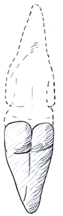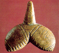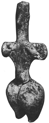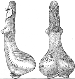 Alla eventuella tvivel på korrektheten i det här påståendet utplånades när jag såg hänget från Dolni Vestonice, ”den eviga kvinnan” (fig 6). En enkel fallossymbol, som benämnts som kvinna eftersom den triangel som finns inristad mitt på henne är en typisk symbol för kvinnlighet från det gamla Europa.
