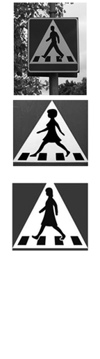 Herr Gårman och skylten för cykelbana är uppenbart manliga. Men även övrig trafikskyltning ger oss budskap om manligt och kvinnligt. Formerna på skyltarna är urgamla symboler som följt oss ända sen vi var samlare och jägare. Den nedåtpekande