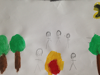 Varje år brukar vi träffas och fira vintersolståndet och vi tänkte berätta hur det går till. Först tänder man en eld. Sen går man till elden och kallar in krafterna i norr, söder, väster, öster, ovan och nedan. Vi brukar sjunga olika sånger och spela på trummor. I ritualen blotar vi med solbröd och vin och sen dansar vi runt elden. Vi brukar också tända tomtebloss och önska saker inför det nya året. Sist tackar vi krafterna och alla andar som ville vara med. Efter det går vi in.